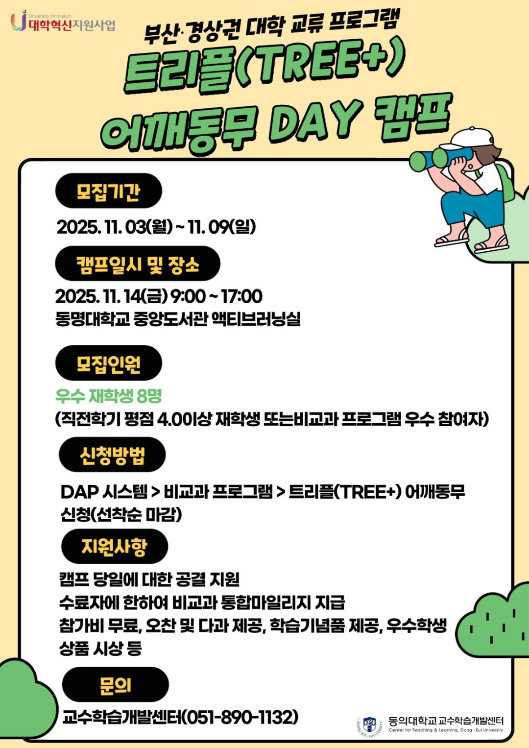 [대학혁신지원사업]2025학년도 트리플(TREE+) 어깨동무 캠프 신청 안내